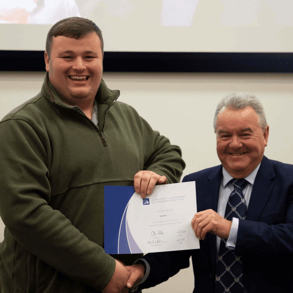 Congratulations to Joe in our Thainstone Specialist Auctions division who has become an Associate of the Institute of Auctioneers and Appraisers in Scotland after completing the first two years of his Market Operations and Management course at Harper Adams University.